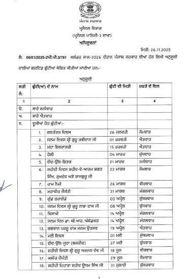 ਖ਼ਬਰਿਸਤਾਨ ਨੈੱਟਵਰਕ: ਪੰਜਾਬ ਵਿੱਚ ਇੱਕ ਵਾਰ ਫਿਰ ਤੋਂ ਛੁੱਟੀਆਂ ਦਾ ਸਿਲਸਿਲਾ ਸ਼ੁਰੂ ਹੋਣ ਜਾ ਰਿਹਾ ਹੈ। ਦਰਅਸਲ, ਅਗਲੇ ਹਫ਼ਤੇ 8 ਅਪ੍ਰੈਲ ਨੂੰ ਸੂਬੇ ਵਿੱਚ ਸਰਕਾਰੀ ਛੁੱਟੀ ਦਾ ਐਲਾਨ ਕੀਤਾ ਗਿਆ ਹੈ। ਇਹ ਛੁੱਟੀ ਸ੍ਰੀ ਨਾਭਾ ਦਾਸ ਜੀ ਦੇ ਜਨਮ ਦਿਹਾੜੇ ਦੇ ਸਬੰਧ ਵਿੱਚ ਕੀਤੀ ਗਈ ਹੈ।