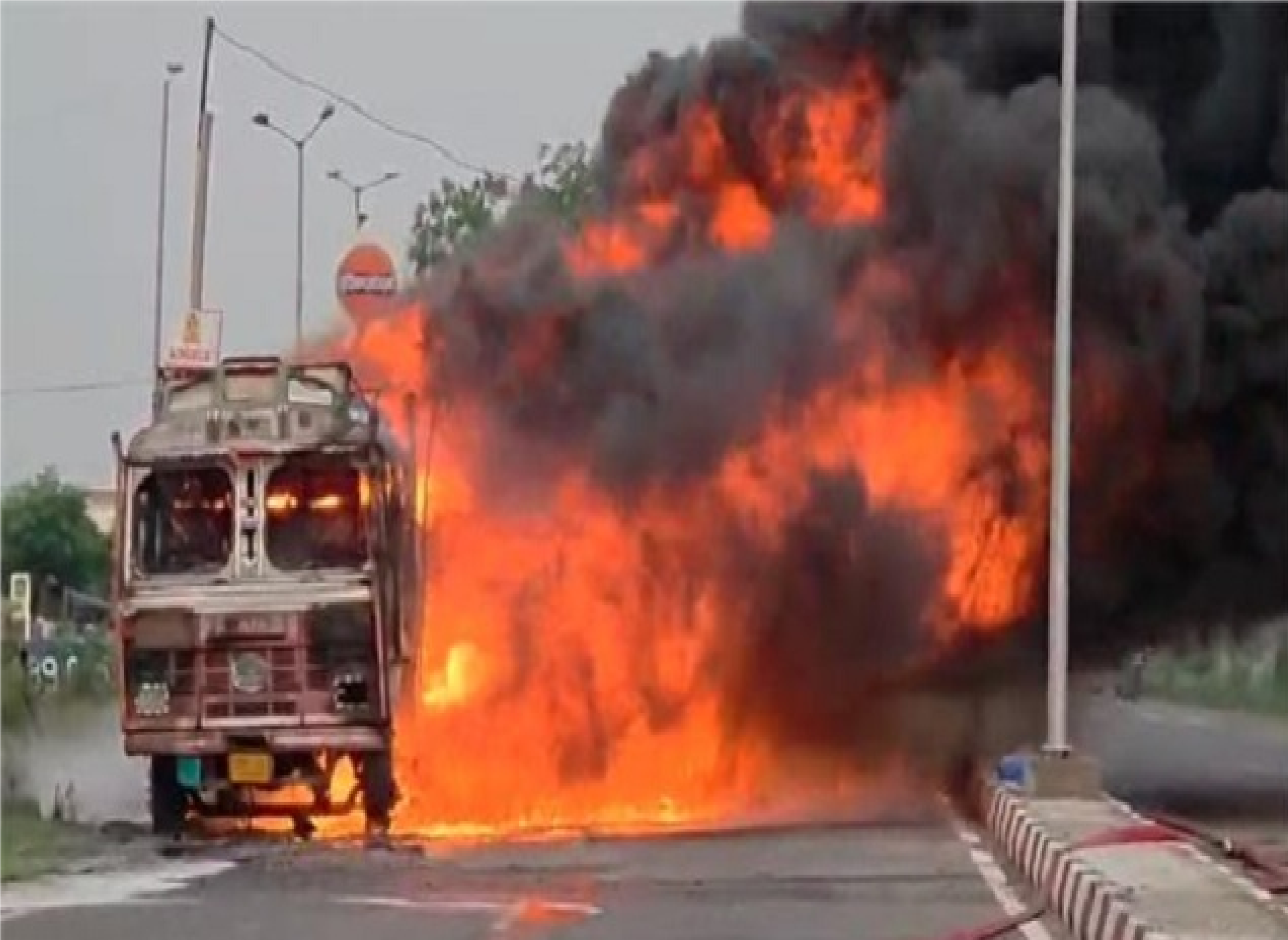 ਖ਼ਬਰਿਸਤਾਨ ਨੈੱਟਵਰਕ- ਰੋਪੜ ਨੇੜੇ ਇਕ ਚਲਦੇ ਟਰੱਕ ਨੂੰ ਅੱਗ ਲੱਗ ਗਈ। ਇਹ ਘਟਨਾ ਕਾਂਜਲਾ ਪਿੰਡ ਨੇੜੇ ਵਾਪਰੀ। ਅੱਗ ਇੰਨੀ ਭਿਆਨਕ ਸੀ ਕਿ ਟਰੱਕ ਅਤੇ ਉਸ ‘ਤੇ ਲੱਦਿਆ ਸਾਮਾਨ ਸੜ ਕੇ ਸੁਆਹ ਹੋ ਗਿਆ। ਇਸ ਟਰੱਕ ਵਿੱਚ ਲਗਭਗ 89.90 ਕੁਇੰਟਲ ਪਲਾਸਟਿਕ ਸੀ। ਡਰਾਈਵਰ ਨੇ ਆਪਣੀ ਸੂਝ-ਬੂਝ ਨਾਲ ਇੱਕ ਵੱਡਾ ਹਾਦਸਾ ਹੋਣ ਤੋਂ ਟਾਲ ਦਿੱਤਾ ਕਿਉਂਕਿ ਹਾਦਸੇ ਵਾਲੀ ਥਾਂ ਦੇ ਨੇੜੇ ਇੱਕ ਪੈਟਰੋਲ ਪੰਪ ਅਤੇ ਇੱਕ ਸਕੂਲ ਸੀ। ਅੱਗ ਇੰਨੀ ਭਿਆਨਕ ਸੀ ਕਿ ਟਰੱਕ ਸੜ ਕੇ ਸੁਆਹ ਹੋ ਗਿਆ।