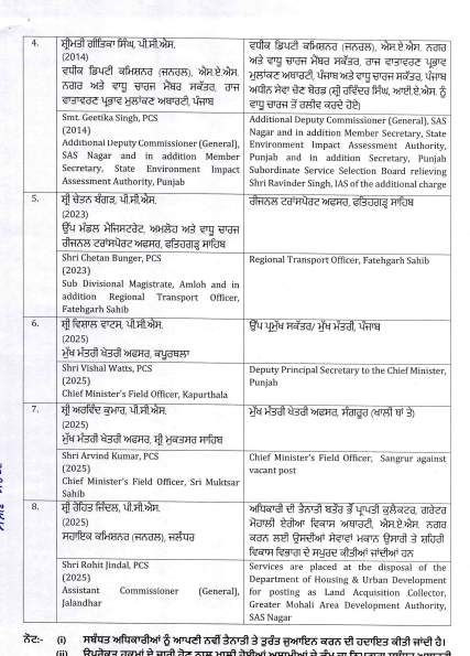 ਖ਼ਬਰਿਸਤਾਨ ਨੈੱਟਵਰਕ: ਪੰਜਾਬ ਸਰਕਾਰ ਵੱਲੋਂ ਪ੍ਰਸ਼ਾਸਨਿਕ ਫੇਰਬਦਲ ਦੀ ਪ੍ਰਕਿਰਿਆ ਲਗਾਤਾਰ ਜਾਰੀ ਹੈ। ਇਸੇ ਤਹਿਤ ਭਗਵੰਤ ਮਾਨ ਸਰਕਾਰ ਨੇ 2 IAS ਅਤੇ 6 PCS ਅਧਿਕਾਰੀਆਂ ਦੇ ਤਬਾਦਲੇ ਕੀਤੇ ਹਨ। ਇਸ ਸਬੰਧੀ ਹੁਕਮ ਜਾਰੀ ਕਰ ਦਿੱਤੇ ਗਏ ਹਨ।