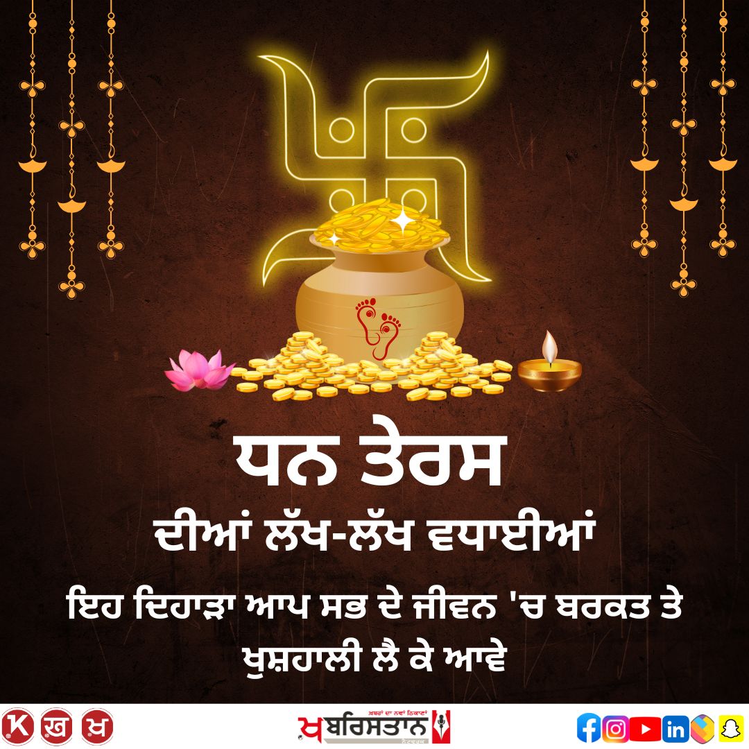 ਖਬਰਿਸਤਾਨ ਨੈੱਟਵਰਕ– ਅੱਜ ਦੇਸ਼ ਭਰ ਵਿਚ ਧਨਤੇਰਸ ਦਾ ਤਿਉਹਾਰ ਮਨਾਇਆ ਜਾ ਰਿਹਾ ਹੈ। ਇਹ ਦਿਨ ਧਨ ਦੇ ਦੇਵਤਾ ਕੁਬੇਰ, ਦੇਵੀ ਲਕਸ਼ਮੀ ਅਤੇ ਸਿਹਤ ਦੇ ਦੇਵਤਾ ਭਗਵਾਨ ਧਨਵੰਤਰੀ ਨੂੰ ਸਮਰਪਿਤ ਹੈ। ਇਸ ਦੇ ਨਾਲ ਹੀ, ਅਚਨਚੇਤੀ ਮੌਤ ਦੇ ਡਰ ਤੋਂ ਛੁਟਕਾਰਾ ਪਾਉਣ ਲਈ ਯਮਦੀਪ ਦਾਨ ਕੀਤਾ ਜਾਂਦਾ ਹੈ। ਨਾਲ ਹੀ, ਇਹ ਖਰੀਦਦਾਰੀ ਲਈ ਸਭ ਤੋਂ ਮਹੱਤਵਪੂਰਨ ਦਿਨ ਹੈ।