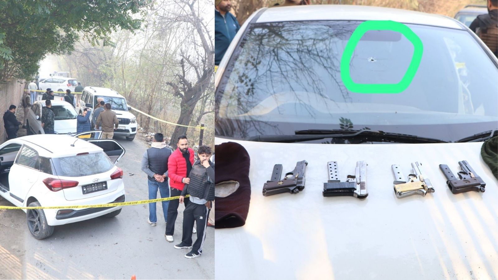 ਪੁਲਸ ਨੂੰ ਗੁਪਤ ਸੂਚਨਾ ਮਿਲੀ ਸੀ ਕਿ ਦੋਸ਼ੀ ਕਿਸੇ ਹੋਰ ਜਗ੍ਹਾ ਜਾ ਰਹੇ ਹਨ, ਜਿਸ ਤੋਂ ਬਾਅਦ ਜਦੋਂ ਪੁਲਸ ਨੇ ਦੋਸ਼ੀਆਂ ਨੂੰ ਫੜਨ ਲਈ ਉਨ੍ਹਾਂ ਦਾ ਪਿੱਛਾ ਕੀਤਾ ਤਾਂ ਬਦਮਾਸ਼ਾਂ ਨੇ ਪੁਲਸ ‘ਤੇ ਗੋਲੀਆਂ ਚਲਾ ਦਿੱਤੀਆਂ। ਇਸ ਤੋਂ ਬਾਅਦ ਪੁਲਸ ਨੇ ਜਵਾਬੀ ਕਾਰਵਾਈ ਕਰਦਿਆਂ ਗੋਲੀਬਾਰੀ ਕੀਤੀ। ਇਸ ਮੁਕਾਬਲੇ ਵਿੱਚ ਇੱਕ ਬਦਮਾਸ਼ ਜ਼ਖਮੀ ਹੋ ਗਿਆ ਹੈ। ਮੁਲਜ਼ਮਾਂ ਦੇ ਕਬਜ਼ੇ ਵਿੱਚੋਂ ਚਾਰ ਹਥਿਆਰ ਬਰਾਮਦ ਕੀਤੇ ਗਏ ਹਨ। ਮੁਲਜ਼ਮਾਂ ਵੱਲੋਂ 5 ਤੋਂ 6 ਗੋਲੀਆਂ ਚਲਾਈਆਂ ਗਈਆਂ ਜਦੋਂ ਕਿ ਪੁਲਸ ਵੱਲੋਂ 7 ਤੋਂ 8 ਗੋਲੀਆਂ ਜਵਾਬੀ ਕਾਰਵਾਈ ਦੌਰਾਨ ਚਲਾਈਆਂ ਗਈਆਂ।