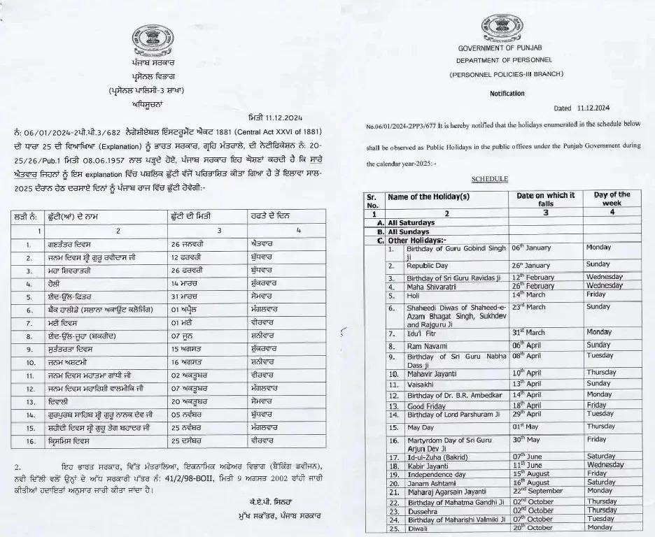 ਪੰਜਾਬ ਸਰਕਾਰ ਵੱਲੋਂ ਸੂਬੇ ਵਿੱਚ ਇੱਕ ਹੋਰ ਜਨਤਕ ਛੁੱਟੀ ਦਾ ਐਲਾਨ ਕੀਤਾ ਗਿਆ ਹੈ। ਇਹ ਛੁੱਟੀ 26 ਫਰਵਰੀ, ਬੁੱਧਵਾਰ ਨੂੰ ਮਹਾਸ਼ਿਵਰਾਤਰੀ ਦੇ ਪਵਿੱਤਰ ਤਿਉਹਾਰ ਦੇ ਮੌਕੇ ‘ਤੇ ਹੈ। ਇਸ ਦਿਨ ਸੂਬੇ ਭਰ ਦੇ ਸਰਕਾਰੀ ਦਫ਼ਤਰਾਂ, ਸਰਕਾਰੀ ਅਤੇ ਨਿੱਜੀ ਸਕੂਲਾਂ ਅਤੇ ਕਾਲਜਾਂ ਵਿੱਚ ਛੁੱਟੀ ਰਹੇਗੀ।