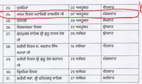ਖ਼ਬਰਿਸਤਾਨ ਨੈੱਟਵਰਕ: ਅਕਤੂਬਰ ਮਹੀਨਾ ਸ਼ੁਰੂ ਹੁੰਦੇ ਹੀ ਦੇਸ਼ ਭਰ ਵਿਚ ਤਿਓਹਾਰਾਂ ਦਾ ਸੀਜ਼ਨ ਵੀ ਸ਼ੁਰੂ ਹੋ ਜਾਂਦਾ ਹੈ। ਅਤੇ ਇਹ ਸੀਜ਼ਨ ਆਪਣੇ ਨਾਲ ਛੁੱਟੀਆਂ ਵੀ ਲੈਕੇ ਆਉਂਦਾ ਹੈ। ਇਸ ਮਹੀਨੇ ਗਾਂਧੀ ਜਯੰਤੀ, ਦੁਸਹਿਰਾ, ਦੀਵਾਲੀ ਅਤੇ ਵਿਸ਼ਕਰਮਾ ਡੇਅ ਤੇ ਤਾਂ ਜਨਤਕ ਛੁੱਟੀਆਂ ਰਹਿਣ ਹੀ ਵਾਲੀਆਂ ਹਨ। ਪੰਜਾਬ ਸਰਕਾਰ ਨੇ 7 ਅਕਤੂਬਰ ਦਿਨ ਮੰਗਲਵਾਰ ਨੂੰ ਜਨਮ ਦਿਹਾੜਾ ਮਹਾਰਿਸ਼ੀ ਵਾਲਮੀਕਿ ਜੀ ਮੌਕੇ ਜਨਤਕ ਛੁੱਟੀ ਦਾ ਐਲਾਨ ਕੀਤਾ ਹੈ।