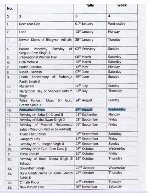 ਖ਼ਬਰਿਸਤਾਨ ਨੈੱਟਵਰਕ– ਇੱਕ ਵਾਰ ਫਿਰ ਪੰਜਾਬ ਵਿੱਚ ਛੁੱਟੀ ਦਾ ਐਲਾਨ ਕੀਤਾ ਗਿਆ ਹੈ। ਇਸ ਦੌਰਾਨ ਪੰਜਾਬ ਵਿੱਚ 1 ਸਤੰਬਰ ਨੂੰ ਛੁੱਟੀ ਰਹੇਗੀ। ਬਾਬਾ ਸ਼੍ਰੀ ਚੰਦ ਜੀ ਦੇ ਜਨਮ ਦਿਵਸ ਮੌਕੇ ਛੁੱਟੀ ਹੁੰਦੀ ਹੈ। ਜਿਸ ਕਾਰਨ ਇਸ ਦਿਨ ਨੂੰ ਜਨਤਕ ਛੁੱਟੀ ਐਲਾਨੀ ਗਈ ਹੈ। ਇਸ ਦੇ ਨਾਲ ਹੀ 5 ਸਤੰਬਰ, ਸ਼ੁੱਕਰਵਾਰ ਨੂੰ ਛੁੱਟੀ ਰਹੇਗੀ। ਇਸ ਦਿਨ ਬਾਬਾ ਜੀਵਨ ਸਿੰਘ ਦਾ ਜਨਮ ਦਿਵਸ ਹੈ। ਇਸ ਦੌਰਾਨ ਸਕੂਲ ਅਤੇ ਕਾਲਜ ਬੰਦ ਰਹਿਣਗੇ।