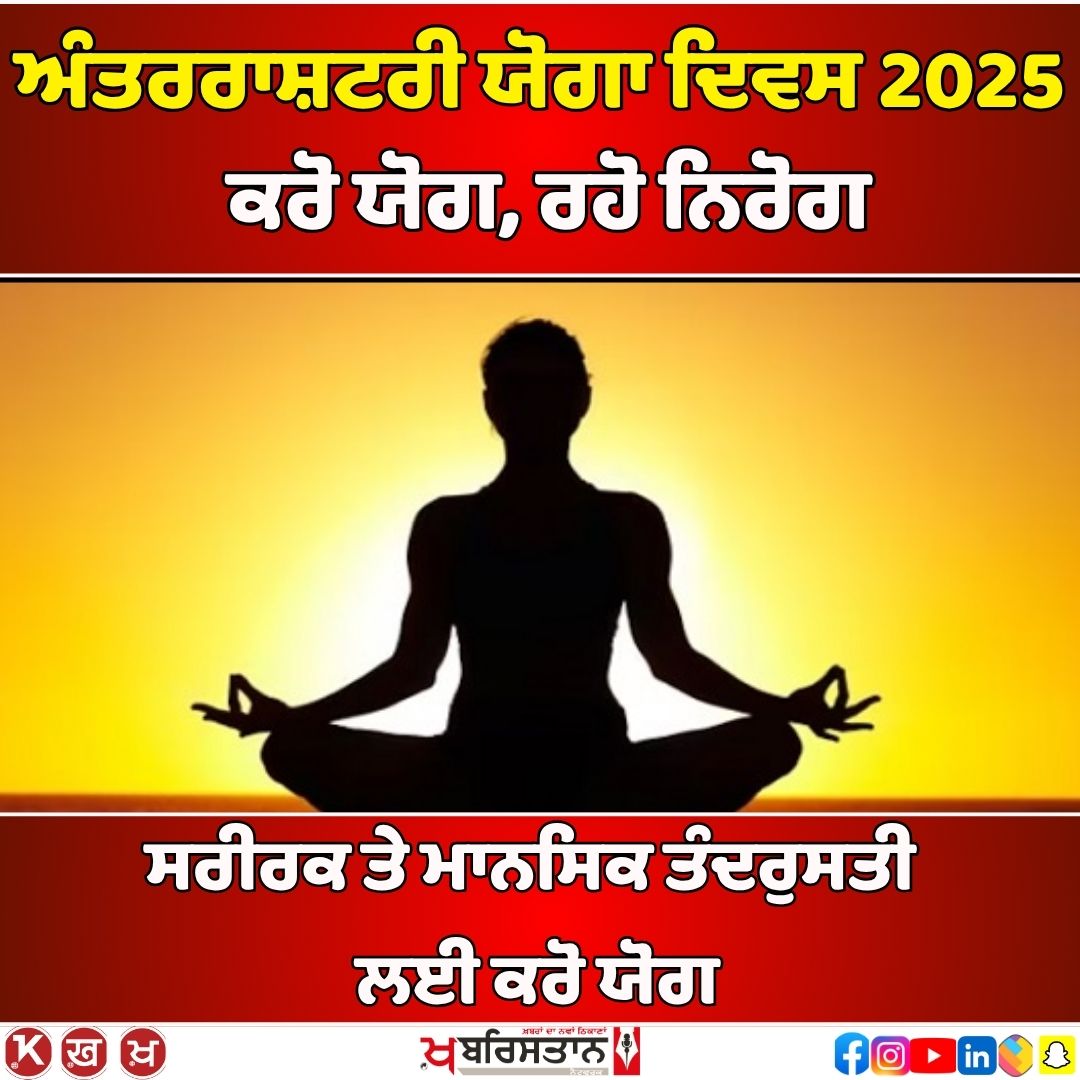 ਹਰ ਸਾਲ 21 ਜੂਨ ਨੂੰ ਅੰਤਰਰਾਸ਼ਟਰੀ ਯੋਗ ਦਿਵਸ ਬਹੁਤ ਜੋਸ਼ ਅਤੇ ਉਤਸ਼ਾਹ ਨਾਲ ਮਨਾਇਆ ਜਾਂਦਾ ਹੈ। ਇਹ ਦਿਨ ਨਾ ਸਿਰਫ਼ ਭਾਰਤ ਲਈ, ਸਗੋਂ ਦੁਨੀਆ ਭਰ ਦੇ ਕਰੋੜਾਂ ਲੋਕਾਂ ਲਈ ਵੀ ਖਾਸ ਹੈ। ਯੋਗ ਸਿਰਫ਼ ਇੱਕ ਸਰੀਰਕ ਕਸਰਤ ਨਹੀਂ ਹੈ, ਸਗੋਂ ਇੱਕ ਅਧਿਆਤਮਿਕ ਅਤੇ ਮਾਨਸਿਕ ਅਨੁਸ਼ਾਸਨ ਹੈ ਜੋ ਸਰੀਰ, ਮਨ ਅਤੇ ਆਤਮਾ ਨੂੰ ਜੋੜਦਾ ਹੈ। ਯੋਗ ਕਰਨ ਨਾਲ ਸਰੀਰਕ ਤੇ ਮਾਨਸਿਕ ਤੰਦਰੁਸਤੀ ਬਣੀ ਰਹਿੰਦੀ ਹੈ।
