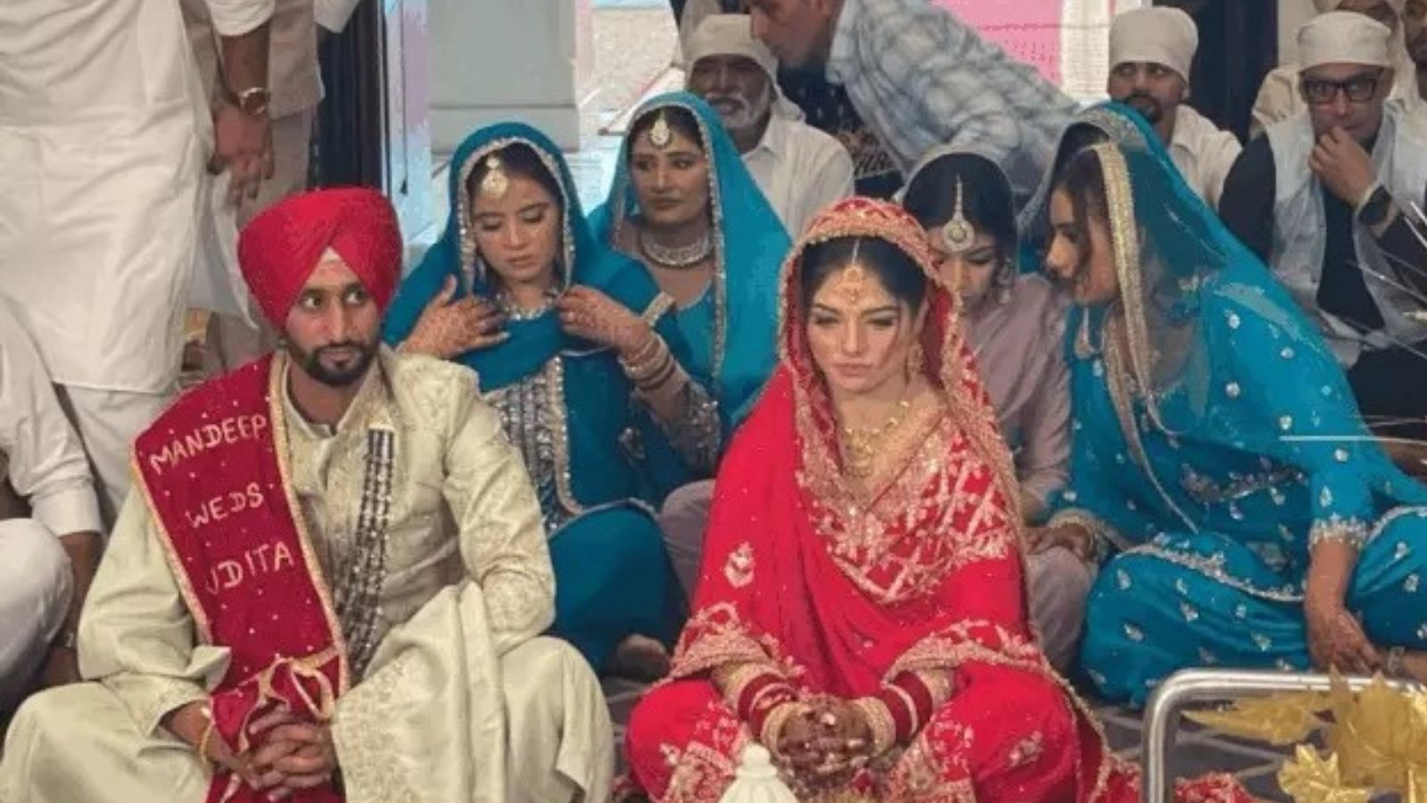 ਖ਼ਬਰਿਸਤਾਨ ਨੈੱਟਵਰਕ: ਜਲੰਧਰ ਦੇ ਹਾਕੀ ਓਲੰਪੀਅਨ ਮਨਦੀਪ ਸਿੰਘ ਨੇ ਹਰਿਆਣਾ ਦੀ ਓਲੰਪੀਅਨ ਖਿਡਾਰਨ ਉਦਿਤਾ ਦੁਹਾਨ ਨਾਲ ਵਿਆਹ ਕਰਵਾ ਲਿਆ ਹੈ। ਦੋਵਾਂ ਨੇ ਸਵੇਰੇ-ਸਵੇਰੇ ਮਾਡਲ ਦੇ ਸ੍ਰੀ ਗੁਰੂਦੁਆਰਾ ਸਾਹਿਬ ਆਨੰਦ ਕਾਰਜ ਹੋਏ। ਇਸ ਦੌਰਾਨ ਪਰਿਵਾਰ ਅਤੇ ਭਾਰਤੀ ਹਾਕੀ ਟੀਮ ਦੇ ਖਿਡਾਰੀ ਮੌਜੂਦ ਸਨ। ਇਹ ਵਿਆਹ ਸਿੱਖ ਰੀਤੀ-ਰਿਵਾਜਾਂ ਅਨੁਸਾਰ ਹੋਇਆ।