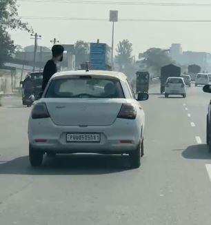 ਨੌਜਵਾਨ ਆਪਣੀ ਜਾਨ ਨੂੰ ਜੋਖਮ ਵਿੱਚ ਪਾ ਕੇ ਕਾਰ ਦੀ ਖਿੜਕੀ ਤੋਂ ਲਟਕ ਰਿਹਾ ਹੈ। ਉਸਨੇ ਵੀਡੀਓ ਰਾਹੀਂ ਨੌਜਵਾਨ ਦੇ ਪਰਿਵਾਰ ਨੂੰ ਅਪੀਲ ਕੀਤੀ ਹੈ ਕਿ ਉਹ ਬੱਚਿਆਂ ਨੂੰ ਇਸ ਤਰ੍ਹਾਂ ਆਪਣੀ ਜਾਨ ਨੂੰ ਜੋਖਮ ਵਿੱਚ ਪਾਉਣ ਤੋਂ ਰੋਕਣ। ਉਸਨੇ ਕਿਹਾ ਕਿ ਜੇਕਰ ਨੌਜਵਾਨ ਦਾ ਸੰਤੁਲਨ ਵਿਗੜ ਜਾਵੇ ਤਾਂ ਸੜਕ ‘ਤੇ ਡਿੱਗ ਜਾਂਦਾ ਹੈ, ਤਾਂ ਬਾਅਦ ਵਿੱਚ ਦੂਜੇ ਡਰਾਈਵਰਾਂ ਨੂੰ ਦੋਸ਼ੀ ਠਹਿਰਾਇਆ ਜਾਂਦਾ ਹੈ। ਹਾਲਾਂਕਿ, ਸੱਚਾਈ ਇਹ ਹੈ ਕਿ ਇਹ ਨੌਜਵਾਨ ਸਟੰਟ ਕਰਕੇ ਨਾ ਸਿਰਫ਼ ਆਪਣੀ ਜਾਨ, ਸਗੋਂ ਆਪਣੇ ਪਿੱਛੇ ਬੈਠੇ ਡਰਾਈਵਰਾਂ ਦੀ ਜਾਨ ਵੀ ਜੋਖਮ ਵਿੱਚ ਪਾਉਂਦੇ ਹਨ। ਇਹ ਕਿਸੇ ਵੀ ਵੇਲੇ ਭਿਆਨਕ ਹਾਦਸੇ ਦਾ ਕਾਰਨ ਬਣ ਸਕਦਾ ਹੈ।