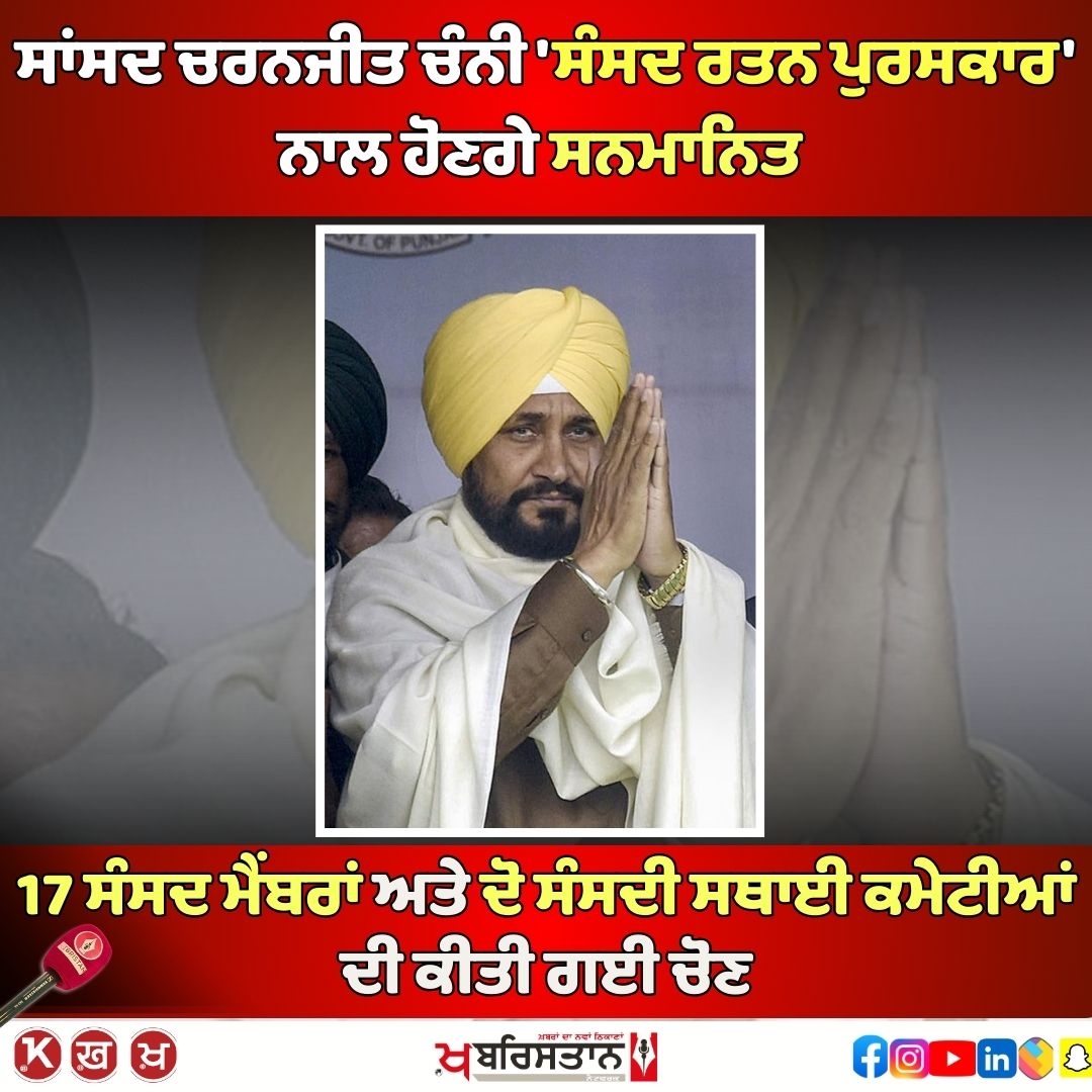 ਖ਼ਬਰਿਸਤਾਨ ਨੈੱਟਵਰਕ: ਸੰਸਦ ਰਤਨ ਪੁਰਸਕਾਰ 2025 ਲਈ ਸਾਂਸਦ ਚਰਨਜੀਤ ਚੰਨੀ ਅਤੇ ਰਵੀ ਕਿਸ਼ਨ ਸਮੇਤ 17 ਸੰਸਦ ਮੈਂਬਰਾਂ ਅਤੇ ਦੋ ਸੰਸਦੀ ਸਥਾਈ ਕਮੇਟੀਆਂ ਨੂੰ ਚੁਣਿਆ ਗਿਆ ਹੈ। ਇਹ ਪੁਰਸਕਾਰ ‘ਪ੍ਰਾਈਮ ਪੁਆਇੰਟ ਫਾਊਂਡੇਸ਼ਨ’ ਦੁਆਰਾ ਸ਼ੁਰੂ ਕੀਤੇ ਗਏ ਸਨ। ਇਹ ਪੁਰਸਕਾਰ ਸੰਸਦ ਮੈਂਬਰਾਂ ਨੂੰ ਸੰਸਦ ਵਿੱਚ ਉਨ੍ਹਾਂ ਦੇ ਯੋਗਦਾਨ ਲਈ ਦਿੱਤੇ ਜਾਂਦੇ ਹਨ।