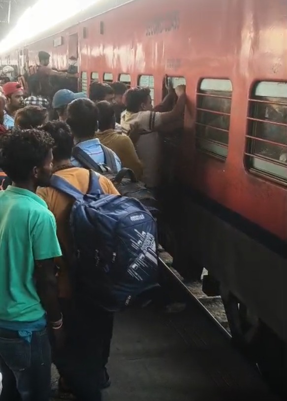 ਜਲੰਧਰ ਤੋਂ ਛੱਠ ਪੂਜਾ ਲਈ ਬਿਹਾਰ ਜਾਣ ਵਾਲੇ ਲੋਕਾਂ ਨਾਲ ਸ਼ਹਿਰ ਦਾ ਰੇਲਵੇ ਸਟੇਸ਼ਨ ਭਰਿਆ ਹੋਇਆ ਹੈ। ਉੱਥੋਂ ਲੰਘਣ ਵਾਲੀਆਂ ਰੇਲਗੱਡੀਆਂ ਵਿੱਚ ਚੜ੍ਹਨ ਲਈ ਇੱਕ ਧੱਕਾ-ਮੁੱਕੀ ਹੋ ਰਹੀ ਹੈ। ਇਸਦੀ ਇੱਕ ਵੀਡੀਓ ਸਾਹਮਣੇ ਆਈ ਹੈ।