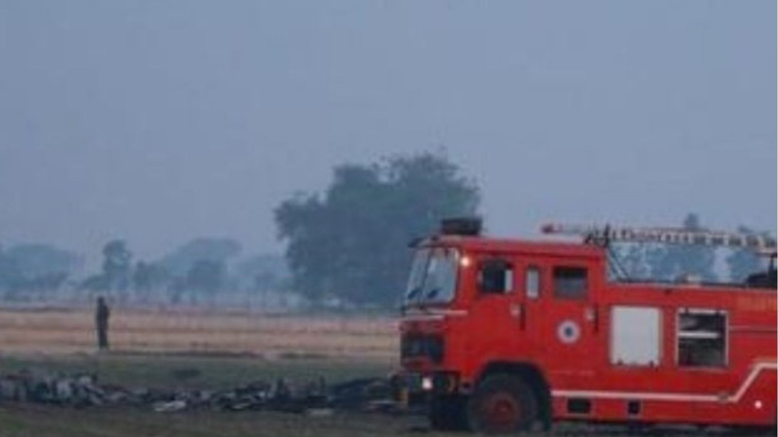 Visuals from the crash site in #Punjab‘s Bathinda where an unidentified aircraft crashed. The video of aircraft in flames was shot by locals. https://t.co/aE3rLbbWOi pic.twitter.com/iUSdP1rc8F