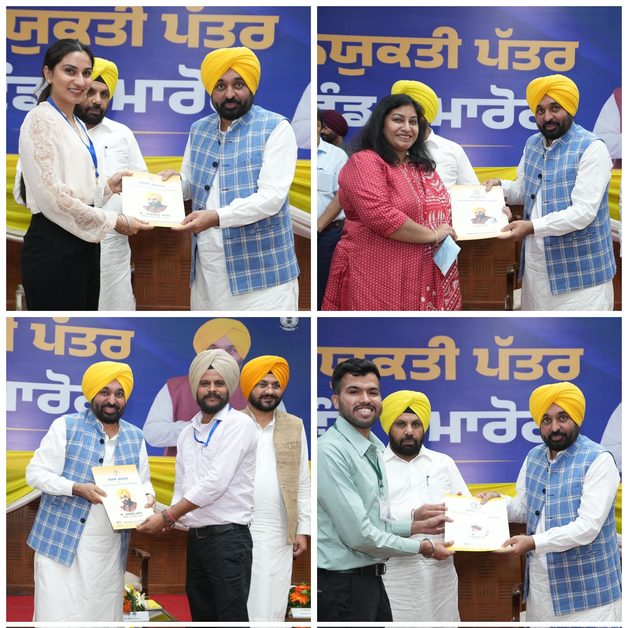 ਇਸ ਦੌਰਾਨ CM ਮਾਨ ਨੇ ਕਿਹਾ ਕਿ ਅਸੀਂ ਪਿਛਲੇ 75 ਸਾਲਾਂ ਤੋਂ ਵਿਗੜਿਆ ਸਿਸਟਮ ਸੁਧਾਰਣ ‘ਤੇ ਲੱਗੇ ਹੋਏ ਹਾਂ। ਸਾਡੀ ਸਰਕਾਰ ਨੇ ਸੱਚੀ ਨੀਅਤ ਨਾਲ ਹਰ ਇੱਕ ਫ਼ੈਸਲਾ ਲੋਕਾਂ ਦੇ ਪੱਖ ਵਿੱਚ ਲਿਆ ਹੈ। ਸਾਡੇ ਨੌਜਵਾਨਾਂ ਦੇ ਉਜਵਲ ਭਵਿੱਖ ਲਈ ਅਸੀਂ ਰੁਜ਼ਗਾਰ ਦੇ ਮੌਕੇ ਪੈਦਾ ਕਰ ਰਹੇ ਹਾਂ। ਉਨ੍ਹਾਂ ਨੇ ਅੱਗੇ ਕਿਹਾ ਕਿ ਸਾਡੀ ਸਰਕਾਰ ਨੇ ਰਿਸ਼ਵਤਖ਼ੋਰ ਅਫ਼ਸਰਾਂ ਵਿਰੁੱਧ ਸਖ਼ਤ ਐਕਸ਼ਨ ਲੈਂਦੇ ਹੋਏ ਕਈ ਅਫ਼ਸਰਾਂ ਨੂੰ ਨੌਕਰੀ ਤੋਂ ਬਰਖ਼ਾਸਤ ਕੀਤਾ। ਸਾਡੇ ਕੋਲ ਇਮਾਨਦਾਰ ਅਤੇ ਸੱਚੇ ਅਫ਼ਸਰ ਵੀ ਹਨ, ਜੋ ਇਸ ਕੰਮ ਵਿੱਚ ਸਰਕਾਰ ਦਾ ਸਾਥ ਦੇ ਰਹੇ ਹਨ। ਅਸੀਂ ਲੋਕਾਂ ਦੇ ਟੈਕਸ ਦਾ ਇੱਕ ਵੀ ਪੈਸਾ ਕਿਸੇ ਨੂੰ ਖਾਣ ਨਹੀਂ ਦੇਵਾਂਗੇ। ਉਨ੍ਹਾਂ ਨੇ ਕਿਹਾ ਕਿ ਰੁਜ਼ਗਾਰ ਕ੍ਰਾਂਤੀ ਨਾਲ ਧੀਆਂ ਦੇ ਸੁਪਨਿਆਂ ਨੂੰ ਮਿਲੇ ਖੰਭ!