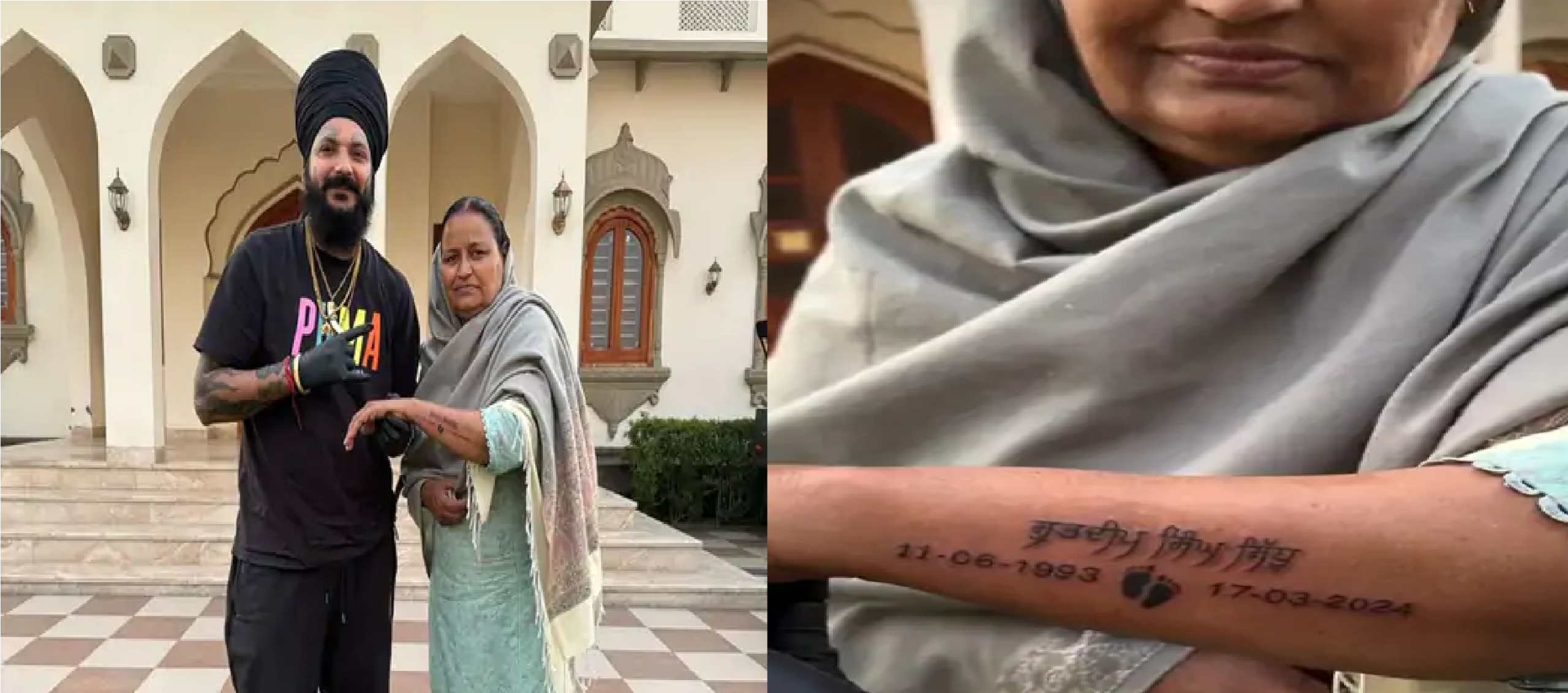 ਪੰਜਾਬੀ ਗਾਇਕ ਸਿੱਧੂ ਮੂਸੇਵਾਲਾ ਦੀ ਮਾਂ ਚਰਨ ਕੌਰ ਨੇ ਆਪਣੇ ਪੁੱਤਰਾਂ ਦੇ ਨਾਮ ਟੈਟੂ ਬਣਵਾਏ| ਉਨ੍ਹਾਂ ਨੇ ਆਪਣੇ ਦੋਵੇਂ ਪੁੱਤਰਾਂ ਦੀ ਜਨਮ ਮਿਤੀ (DOB), ਨਾਮ ਅਤੇ ਪੈਰਾਂ ਦਾ ਟੈਟੂ ਆਪਣੀ ਬਾਂਹ ‘ਤੇ ਬਣਵਾਇਆ ਹੈ। ਇਸ ਸਾਲ ਮਈ ਮਹੀਨੇ ਵਿੱਚ ਪੰਜਾਬੀ ਗਾਇਕ ਸਿੱਧੂ ਮੂਸੇਵਾਲਾ ਦੀ ਮੌਤ ਨੂੰ 3 ਸਾਲ ਹੋ ਜਾਣਗੇ। ਜਦੋਂ ਕਿ ਛੋਟਾ ਸਿੱਧੂ ਮਾਰਚ ਵਿੱਚ 1 ਸਾਲ ਦਾ ਹੋ ਜਾਵੇਗਾ।