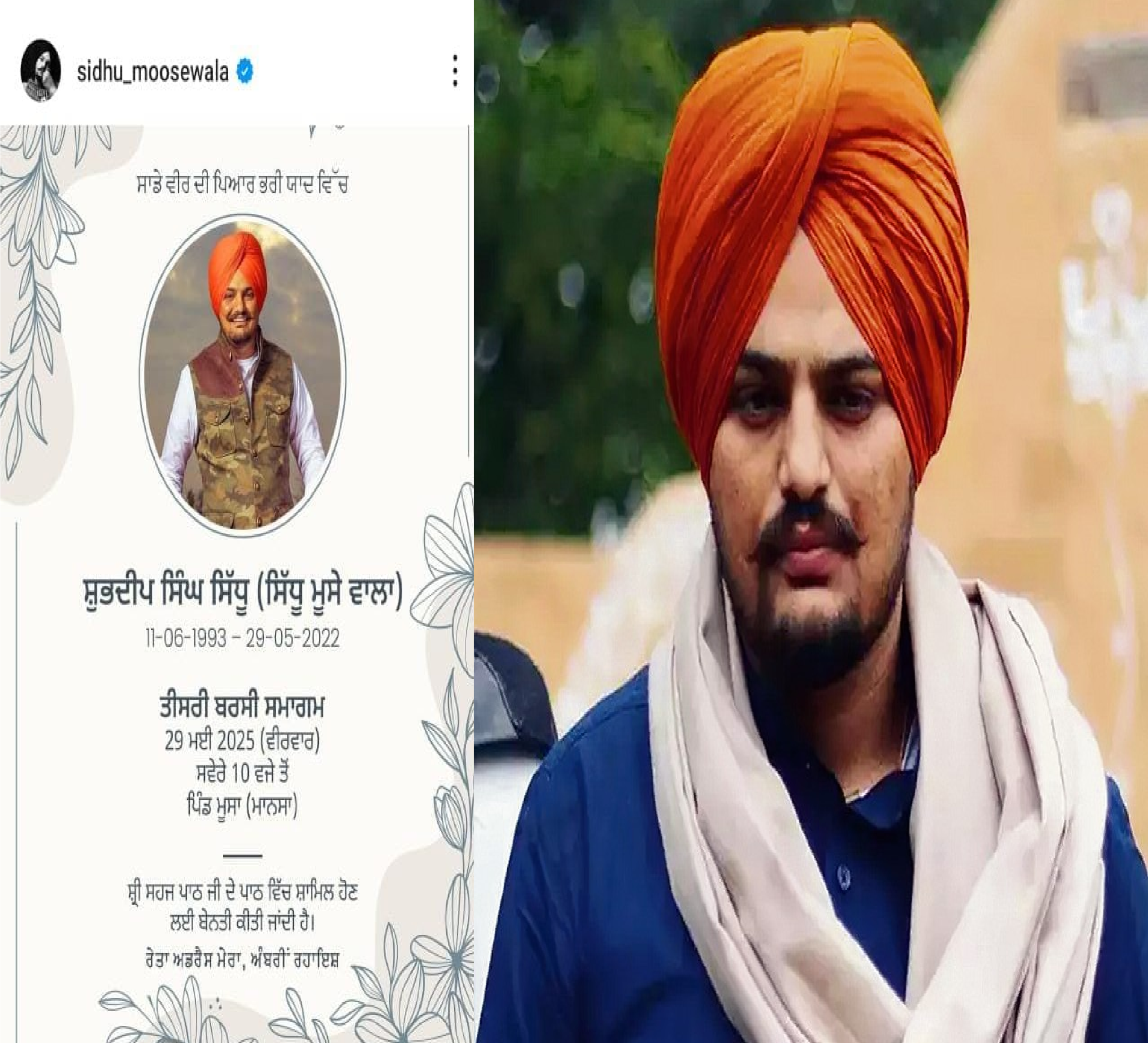 ਖਬਰਿਸਤਾਨ ਨੈੱਟਵਰਕ- ਪੰਜਾਬੀ ਗਾਇਕ ਸ਼ੁਭਦੀਪ ਸਿੰਘ ਸਿੱਧੂ ਮੂਸੇਵਾਲਾ ਦੀ ਤੀਜੀ ਬਰਸੀ ਮਾਨਸਾ ਦੇ ਪਿੰਡ ਮੂਸਾ ਵਿਖੇ ਭਲਕੇ 29 ਮਈ 2025 ਨੂੰ ਮਨਾਈ ਜਾ ਰਹੀ ਹੈ। ਇਸ ਦੌਰਾਨ ਸ੍ਰੀ ਸਹਿਜ ਪਾਠ ਦੇ ਭੋਗ ਪਾਏ ਜਾਣਗੇ।